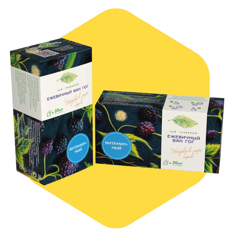 Упаковка: 20 фильтр-пакетов × 1,5 г (всего 30 г) Натуральный травяной сбор, вдохновлённый творчеством Ван Гога и богатством алтайской природы. Этот чай сочетает в себе пользу и вкус лесных ягод, мягкость иван-чая и лёгкую пряность чабреца. Идеально подойдёт для поддержки иммунитета и общего тонуса.